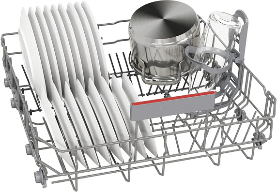 Модель имеет таймер отсрочки запуска, который позволяет программировать начало мойки на удобное для вас время. В конце каждой программы звучит сигнал, информирующий о завершении процесса. Машина имеет три корзины, включая верхнюю, которую можно переставлять по высоте с помощью системы Rackmatic-3. Это позволяет максимально эффективно использовать пространство внутри машины. Посудомоечная машина Bosch SMS4HMB62T обладает классом энергопотребления D, классом мытья A и классом сушки A. Это гарантирует высокую эффективность мойки и сушки при низком энергопотреблении. Уровень шума составляет всего 44 дБ, что делает ее одной из самых тихих моделей на рынке.