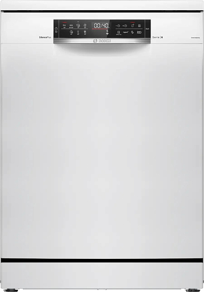 Посудомоечная машина Bosch SMS6EMW65Q - это высококачественная, полноразмерная посудомоечная машина, которая сочетает в себе эстетику и функциональность. С ее белым цветом и черной панелью управления, эта машина не только выглядит стильно, но и обеспечивает превосходную производительность. Она оснащена шестью стандартными программами и четырьмя температурными режимами, что позволяет выбирать наиболее подходящий режим для различных типов посуды и степени загрязнения. Благодаря функции автоматического определения загрузки, машина сама регулирует количество воды и энергии, необходимое для эффективной и экономичной работы.