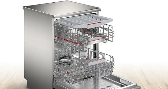Посудомоечная машина Bosch SMS6ZCI37Q выполнена в благородном оттенке нержавеющей стали с аккуратной черной панелью управления, которая гармонично вписывается в любой кухонный интерьер. Прямые, лаконичные линии корпуса сочетаются с практичной обработкой против отпечатков пальцев, что сохраняет аккуратный вид без частых протираний. Внутренняя камера из нержавеющей стали не только эстетична, но и прочна, что вместе с гарантией 10 лет от сквозной коррозии подтверждает долговечность конструкции. Открытая панель с дисплеем и сенсорными кнопками обеспечивает интуитивное взаимодействие, а встроенная подсветка облегчает загрузку посуды и контроль результата после завершения цикла.