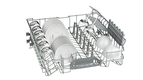 1/2 загрузки называют ещё половинной или неполной загрузкой. При обычной загрузке 10–14 комплектов с этой опцией вы сможете отмыть за один раз 6 и менее комплектов посуды. При этом подача воды идёт только в одну корзину, благодаря чему получается добиться отличного результата и сэкономить ресурсы, включая электроэнергию.