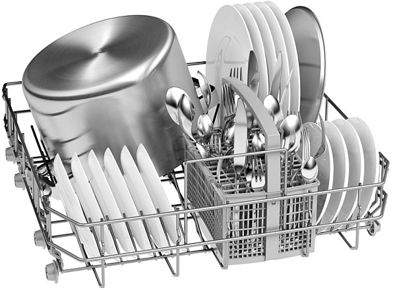 1/2 загрузки называют ещё половинной или неполной загрузкой. При обычной загрузке 10–14 комплектов с этой опцией вы сможете отмыть за один раз 6 и менее комплектов посуды. При этом подача воды идёт только в одну корзину, благодаря чему получается добиться отличного результата и сэкономить ресурсы, включая электроэнергию.