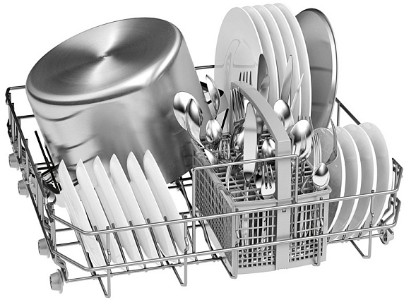 1/2 загрузки называют ещё половинной или неполной загрузкой. При обычной загрузке 10–14 комплектов с этой опцией вы сможете отмыть за один раз 6 и менее комплектов посуды. При этом подача воды идёт только в одну корзину, благодаря чему получается добиться отличного результата и сэкономить ресурсы, включая электроэнергию.