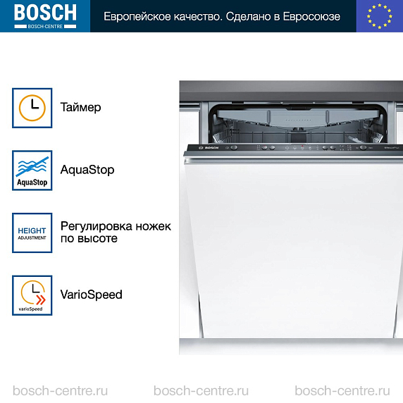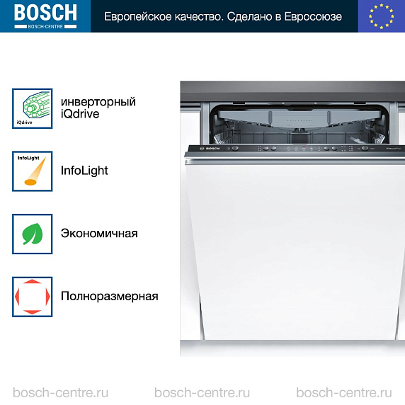 ** Все информационные материалы, представленные на Сайте, носят справочный характер и не могут в полной мере передавать достоверную информацию о свойствах, комплектации и характеристиках товара, включая цвета, размеры и формы. Фирма-производитель оставляет за собой право на внесение изменений в конструкцию, дизайн и комплектацию товара без предварительного уведомления. Перед оформлением Заказа Покупатель должен обратиться к Продавцу для уточнения свойств и характеристик Товара. Подробная информация о товаре указывается в инструкции и на упаковке товара. Используемое название в России: Бош SMV25EX00E