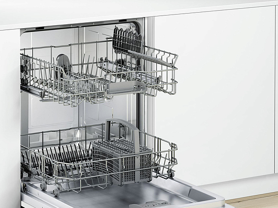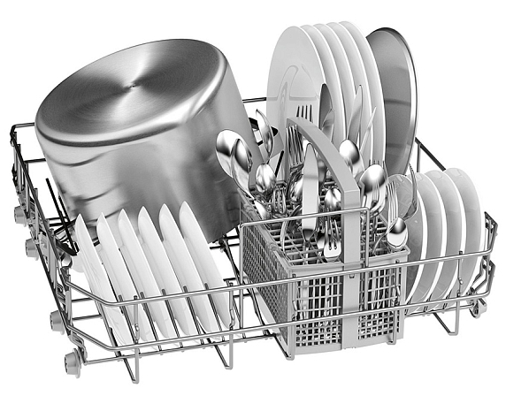 Посудомоечная машина Bosch SMV46AX01E оснащена 6 программами, в том числе «авто» и «интенсивная», которые подходят для посуды с высокой степенью загрязненности. Верхняя корзина регулируется по высоте, что позволяет поместить в нижний короб более крупную посуду, например, блюдо или объемную кастрюлю, что увеличивает комфорт эксплуатации. Система AquaStop гарантирует безопасность использования, защищая устройство от протечек.