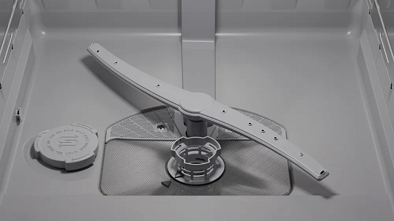 Внутренняя компоновка продумана для комфортного размещения посуды: три корзины с регулируемым верхним ящиком Rackmatic-3 дают свободу манипуляций при загрузке громоздких кастрюль и хрупкой сервировки, а две полочки для чашек в верхнем коробе и система складных направляющих на обоих уровнях позволяют оптимизировать пространство в зависимости от потребностей. Материал резервуара сочетает нержавеющую сталь и пластик, что обеспечивает долговечность и устойчивость к воздействию моющих средств.