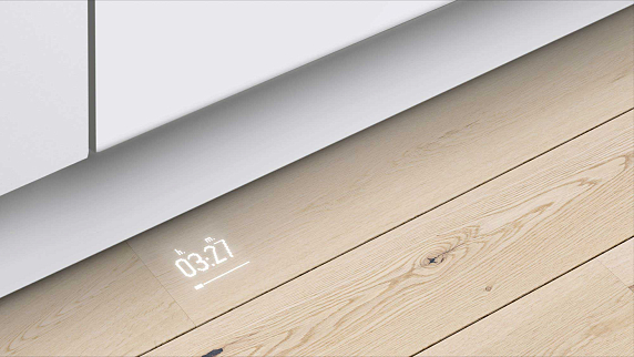 Дисплей в посудомоечной машине расположен вверху фронтальной части и помогает с настройками, а также в коммуникации с устройством. Отображение текста представлено двумя строками с шестью символами в каждой.