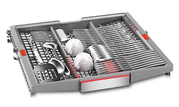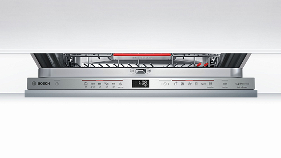 Bosch SMV66TX06R — это полновстраиваемая посудомоечная машина шириной 60 см, рассчитанная на 14 комплектов посуды. Предусмотрено шесть программ и специальные функции VarioSpeedPlus и IntensiveZone. Система Rackmatic-3 позволяет регулировать высоту верхнего короба. В нижнем коробе есть 8 направляющих FLIPTINES для глубокой посуды, дополнительный фиксатор для бокалов и две полки для кухонной утвари. В комплект входит металлическая пластина на столешницу для защиты от пара.