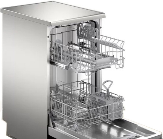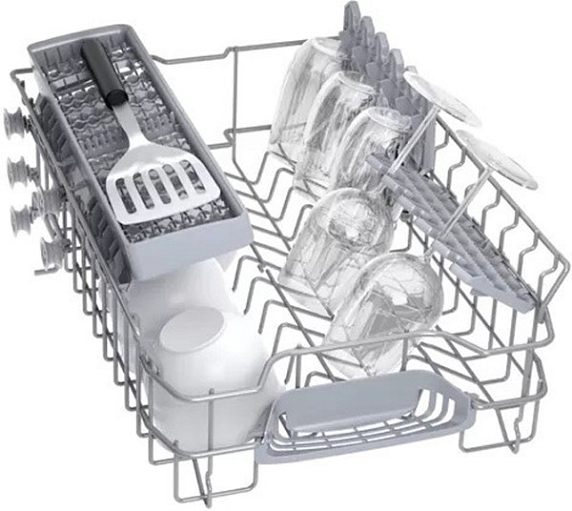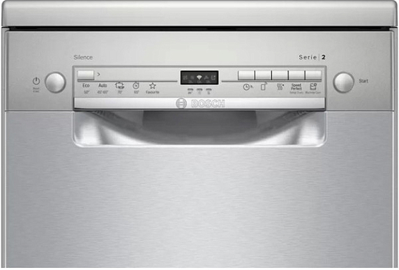 Посудомоечная машина BOSCH SPS 2IKI04 E выполнена в серебристом цветовом решении. Данный прибор вмещает в себя 9 комплектов посуды. Ширина данного устройства 45 см, что позволит вместить его на любую кухню. Дисплей облегчит эксплуатацию посудомойки.