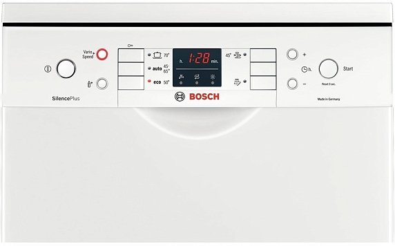 Посудомоечная машина SPS 53M52 RU — практичное и функциональное решение от Bosch. Короба VarioFlex оснащены складными держателями, что позволяет оптимизировать загрузку. Функция «Гигиена» — это эффективная дезинфекция. Прибор в течение 10 минут ополаскивает посуду водой 70°C. Это особенно важно для людей, страдающих аллергией, и семей с маленькими детьми. Защита от протечек и блокировка панели управления повышают уровень безопасности.