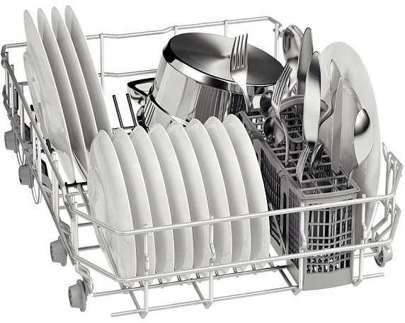 Посудомоечная машина SPV 40E30 RU с регулируемым по высоте верхним коробом обеспечивает максимум пространства для комфортного размещения посуды любого размера. Инверторный двигатель отличает тихая работа, долговечность и низкое потребление электроэнергии. Блокировка панели управления защищает прибор от случайного включения. Встраиваемая модель привносит в интерьер гармонию и эстетику.