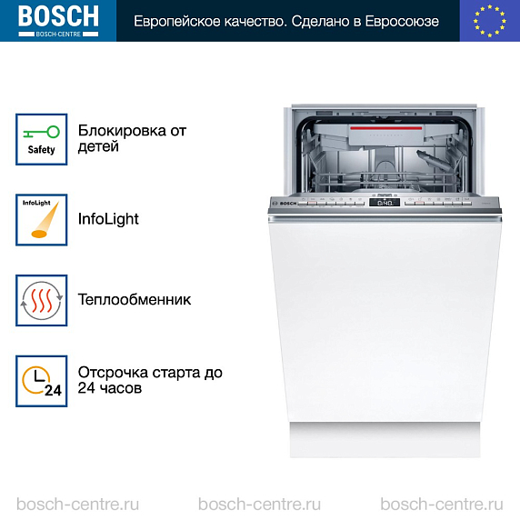 Посудомоечная машина BOSCH SPV4XMX28E — это узкая встраиваемая модель с современным функционалом.