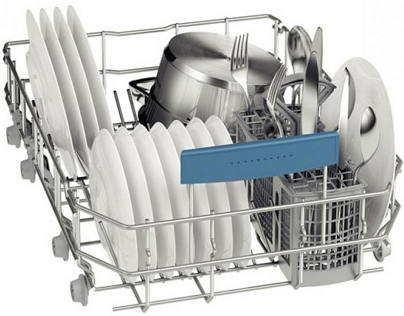 Посудомоечная машина Bosch SPV 53M90EU встраивается в нишу шириной 45 см. 5 температурных режимов и 5 программ, включая специальные для сильно и слабозагрязненной посуды, позволяют отмыть тарелки, чашки и кастрюли. Сенсор чистоты воды позволяет автоматически регулировать количество используемого моющего средства. Об окончании цикла извещает индикатор «Луч на полу» — цвет изменится с красного на голубой.