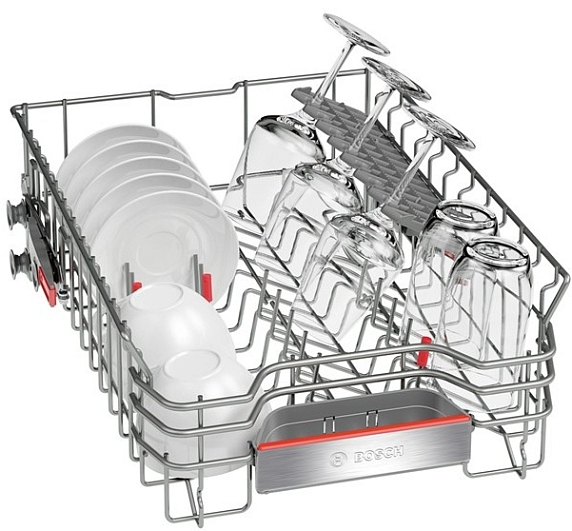 Переставляемый по высоте верхний короб системы Rackmatic и Rackmatic-3 создан для размещения габаритной посуды в нижней корзине посудомоечных машин. Чтобы правильно уложить высокие кастрюли можно поднять верхний короб даже при его полной загрузке на 5 см. Обычно этой высоты вполне хватает для нестандартной посуды. При этом качество мытья останется таким же хорошим.