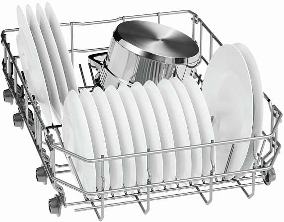 Посудомоечная машина Bosch SPV25FX10R — узкая встраиваемая модель с 5 программами мытья и 3 температурными режимами. Благодаря 3 коромыслам достигается оптимальное распыление воды по моечной камере. Автопрограмма существенно упрощает использование: система сенсоров определяет количество посуды и степень ее загрязнения, а затем настраивает параметры работы.