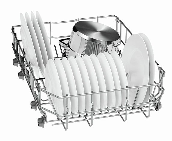 Посудомоечная машина Bosch SPV25FX20R гарантирует гигиеническую чистоту посуды, благодаря автоматической функции HygienePlus. Почти бесшумный инверторный мотор EcoSilence Drive сохраняет тишину в доме в ночное время. Машина закрывается автоматически, если угол открытия двери менее 10 градусов. Механическая блокировка защитит от нежелательного открытия прибора.
