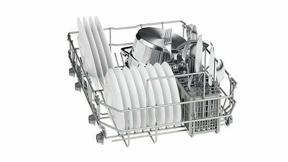 1/2 загрузки называют ещё половинной или неполной загрузкой. При обычной загрузке 10–14 комплектов с этой опцией вы сможете отмыть за один раз 6 и менее комплектов посуды. При этом подача воды идёт только в одну корзину, благодаря чему получается добиться отличного результата и сэкономить ресурсы, включая электроэнергию.