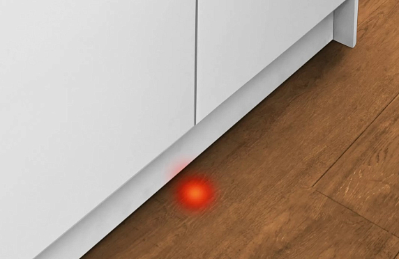 Луч Info Light светит на пол, когда программа выполняется. Если открыть дверь до завершения мойки, процесс сушки будет нарушен, так как внутрь камеры попадет холодный воздух. Луч Info Light погаснет, если программа завершена. Таким образом вы точно знаете, что сушка посуды выполнена в полном объеме и не откроете дверцу раньше времени.