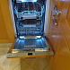 Среди моделей, которые поместятся на малогабаритные кухни, есть как встроенные, так и отдельностоящие. Они индентичны по объему, функционалу и встроенным функциям, разница лишь в том, могут ли их закрыть мебельные фасады или нет. Сушка в них бывает конденсационная или при помощи теплообменника, в некоторых приборах доступна экстра сушка.