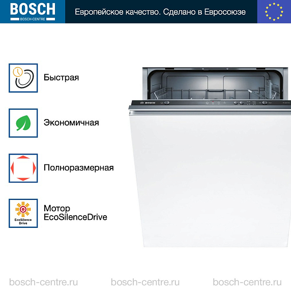 Встраиваемая посудомоечная машина Bosch SMV24AX00E, выпущенная ведущим мировым производителем бытовой техники, обладает всеми необходимыми функциями и характеристиками для обеспечения эффективного и бережного ухода за посудой.