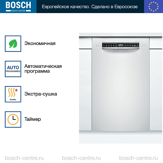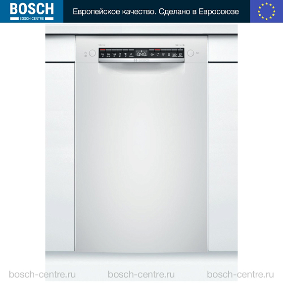 Встраиваемая посудомоечная машина Bosch SPU4HMW53S — это надежное и эффективное решение для современной кухни. Произведенная в Евросоюзе, эта модель предлагает высокое качество и долговечность, подтвержденные гарантией на 12 месяцев. Машина частично встраивается, что позволяет ей гармонично вписаться в любой интерьер, сохраняя при этом доступ к панели управления. Дизайн этой модели отличается простотой и функциональностью. Белый цвет панели управления придает ей современный и стильный вид. Управление осуществляется с помощью кнопок, а на дисплее отображается вся необходимая информация о текущем режиме работы.