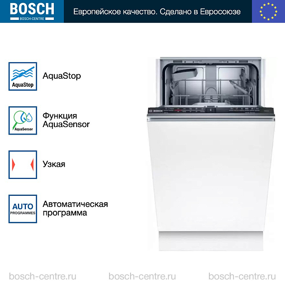 Посудомоечная машина Bosch SPV4HKX45E — это узкая встраиваемая модель с инверторным двигателем.