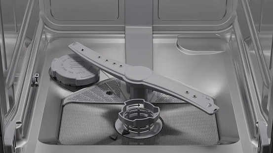 Внутреннее пространство из нержавеющей стали рассчитано на 10 комплектов, расположенных на двух уровнях: верхняя корзина с системой Rackmatic-3 позволяет менять высоту без усилий, а набор из двух полочек для чашек в верхнем ярусе и дополнительной полки для чашек в нижней корзине обеспечивает аккуратное размещение хрупкой посуды; направляющие для тарелок представлены двумя складными элементами в верхнем отсеке и аналогичными в нижнем. В нижнем отсеке предусмотрена корзина для столовых приборов, что упрощает сортировку. Самоочищающийся фильтр снижает необходимость ручного обслуживания, а Machine Care предлагает программу для ухода за машиной и поддержания чистоты резервуара.