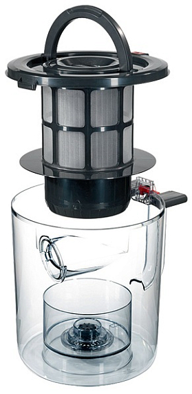 Большой объем контейнера этой модели пылесоса — 3 л позволяет произвести уборку даже в очень большом доме за один раз. Прибор оснащен выпускным фильтром HEPА: воздух на выходе чище, чем в доме, не требует замены, можно мыть.