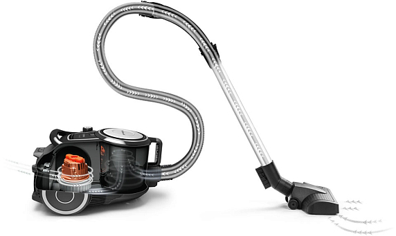 Особенно ценю в нем электронную регулировку мощности с поворотным регулятором - это позволяет мне контролировать процесс уборки и справляться с любыми загрязнениями. Безмешковая система очень удобна, ведь не нужно заморачиваться с покупкой и заменой мешков для сбора пыли. Контейнер для сбора пыли легко очищается, что существенно упрощает процесс уборки.