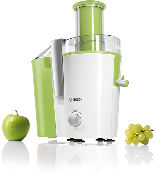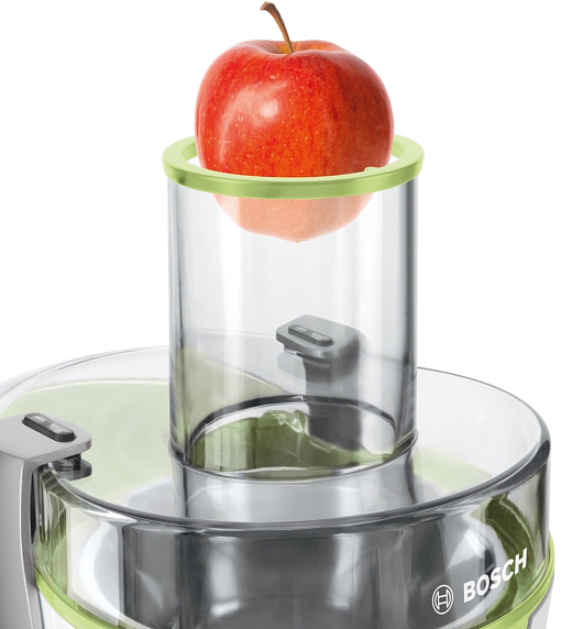 Мощная соковыжималка Bosch MES 25G0 — универсальный прибор для мягких и твердых фруктов. Широкое загрузочное позволяет загружать целые овощи и фрукты. Свежевыжатый сок обладает большим количеством натуральных пигментов, которые при долгой работе оставляют следы на белом пластике. Поэтому то, что элементы соковыжималки (кроме моторного механизма) можно мыть в посудомоечной машине, одно из важных достоинств прибора.