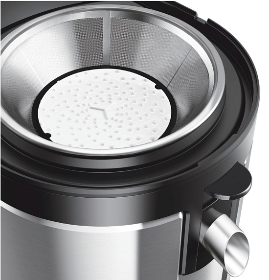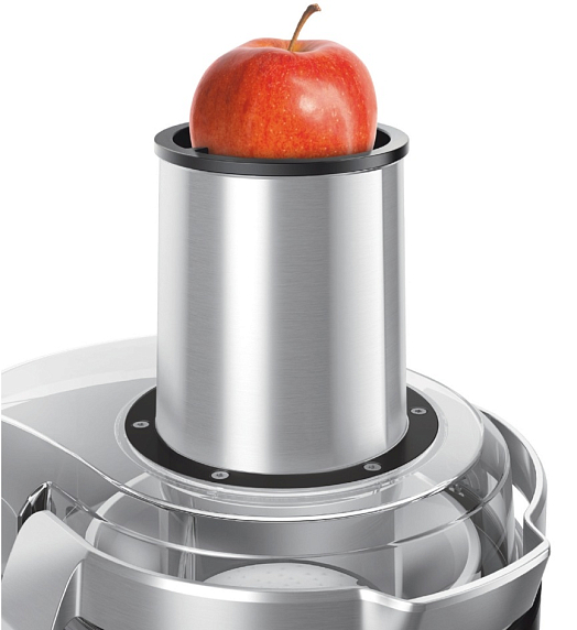 Большое загрузочное отверстие диаметром 84 мм позволяет загружать большинство фруктов и овощей без предварительной нарезки. Вместительный резервуар для сока объемом 1.5 литра и контейнер для мякоти на 3 литра делают модель удобной для приготовления напитков на всю семью. Керамический нож отличается повышенной износостойкостью и прост в обслуживании. Компактные габариты и отсек для сетевого шнура упрощают хранение прибора на кухне.