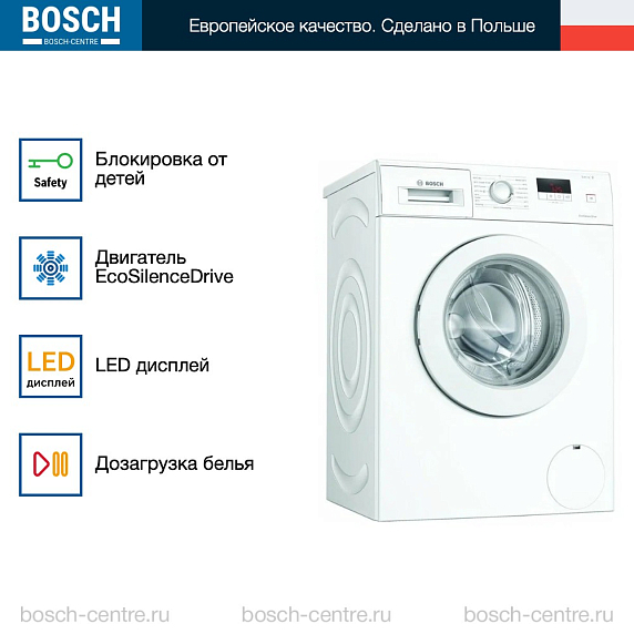 Стиральная машина Bosch WAJ240L3SN 1200 об/мин, белый, инверторный EcoSilenceDrive двигатель