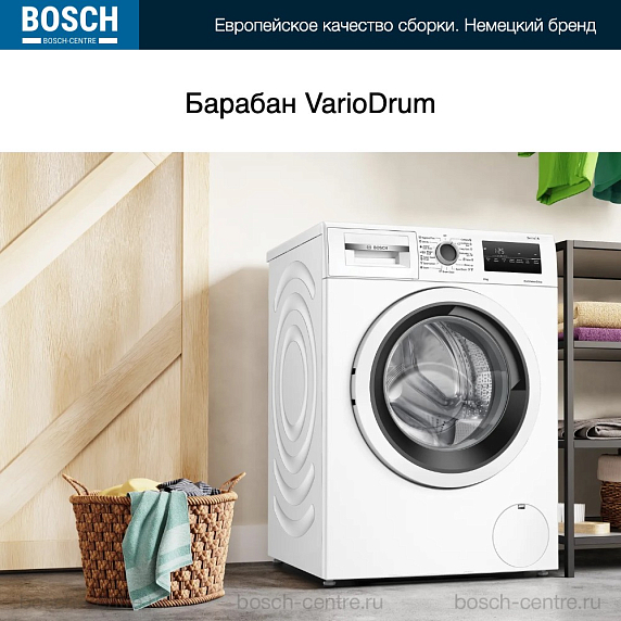 Барабан — это емкость в которую закладывают белье. По его объему определяют возможность загрузки. Материалом служит высококачественная нержавеющая сталь. Внутри барабана есть ребра со специальной конфигурацией, которые при вращении этого элемента переворачивают и бережно отстирывают вещи. Барабаны Bosch прочны, долговечны и бесшумны.