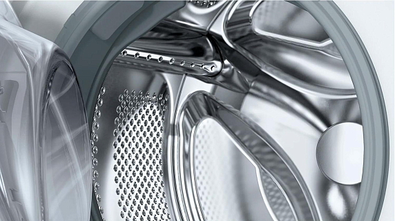 Барабан — это емкость в которую закладывают белье. По его объему определяют возможность загрузки. Материалом служит высококачественная нержавеющая сталь. Внутри барабана есть ребра со специальной конфигурацией, которые при вращении этого элемента переворачивают и бережно отстирывают вещи. Барабаны Bosch прочны, долговечны и бесшумны.