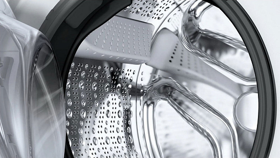 Барабан — это емкость в которую закладывают белье. По его объему определяют возможность загрузки. Материалом служит высококачественная нержавеющая сталь. Внутри барабана есть ребра со специальной конфигурацией, которые при вращении этого элемента переворачивают и бережно отстирывают вещи. Барабаны Bosch прочны, долговечны и бесшумны.