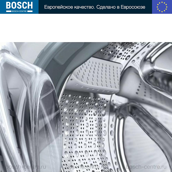 Барабан — это емкость в которую закладывают белье. По его объему определяют возможность загрузки. Материалом служит высококачественная нержавеющая сталь. Внутри барабана есть ребра со специальной конфигурацией, которые при вращении этого элемента переворачивают и бережно отстирывают вещи. Барабаны Bosch прочны, долговечны и бесшумны.