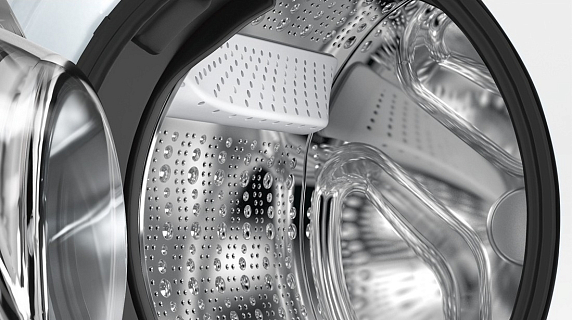 Барабан — это емкость в которую закладывают белье. По его объему определяют возможность загрузки. Материалом служит высококачественная нержавеющая сталь. Внутри барабана есть ребра со специальной конфигурацией, которые при вращении этого элемента переворачивают и бережно отстирывают вещи. Барабаны Bosch прочны, долговечны и бесшумны.