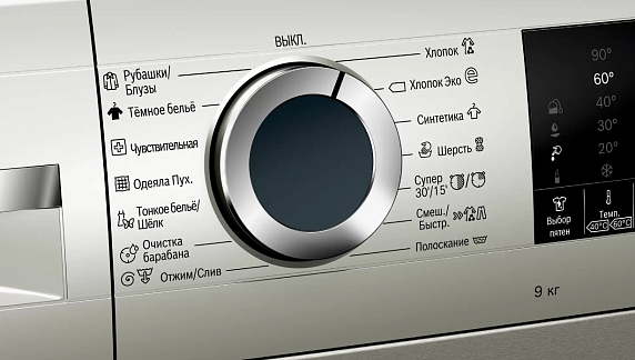 - простоту управления — электронный сенсорный дисплей показывает все необходимые сведения, а программы выбираются поворотным переключателем;