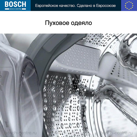 Барабан — это емкость в которую закладывают белье. По его объему определяют возможность загрузки. Материалом служит высококачественная нержавеющая сталь. Внутри барабана есть ребра со специальной конфигурацией, которые при вращении этого элемента переворачивают и бережно отстирывают вещи. Барабаны Bosch прочны, долговечны и бесшумны.