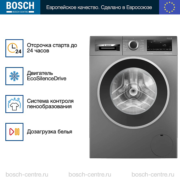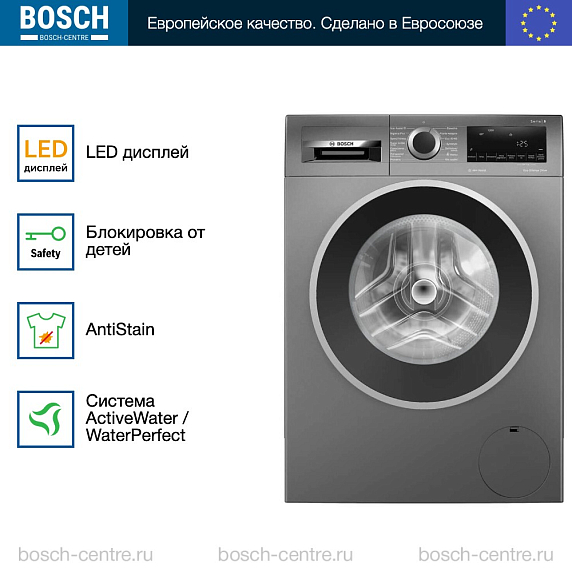 ** Все информационные материалы, представленные на Сайте, носят справочный характер и не могут в полной мере передавать достоверную информацию о свойствах, комплектации и характеристиках товара, включая цвета, размеры и формы. Фирма-производитель оставляет за собой право на внесение изменений в конструкцию, дизайн и комплектацию товара без предварительного уведомления. Перед оформлением Заказа Покупатель должен обратиться к Продавцу для уточнения свойств и характеристик Товара. Подробная информация о товаре указывается в инструкции и на упаковке товара. Используемое название в России: Бош WGG142ZRPL