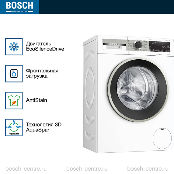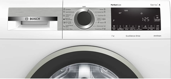 Стальная машина Bosch оснащена электронным управлением, включая поворотный переключатель и сенсорные элементы. Устройство имеет многофункциональный LED-дисплей, который отображает ход программы, время до окончания стирки и максимальную загрузку для выбранной программы. Когда программа стирки завершена, вы услышите акустический сигнал. Дополнительно, машина имеет функцию отложенного старта, позволяющую отсрочить начало стирки до 24 часов. Системы ActiveWater и WaterPerfect обеспечивают оптимальную эксплуатацию воды в зависимости от количества белья. Корпус машины выполнен в классическом белом цвете.