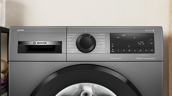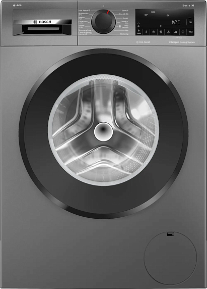 Стиральная машина Bosch WGG244RFSN в сдержанном сером цвете подчёркивает утончённый облик техники, рассчитанной на современное пространство. Высокая колонна высотой 84.8 см и аккуратная ширина 59.8 см делают прибор удобным для установки в типичном помещении, а глубина 63.6 см обеспечивает вместительность без лишних выступов. Отдельностоящий формат и фронтальная загрузка создают простой доступ к барабану VarioDrum из нержавеющей стали, который сочетает деликатное обращение с бельём и эффективное удаление загрязнений. Дверца с петлями слева открывается широко, обеспечивая удобство при загрузке до 9 кг одежды, при этом глубина с открытой створкой составляет 107.3 см, что важно учитывать при планировке зоны прачечной. Внутренняя подсветка облегчает сортировку и предотвращает забытые вещи, а лаконичная панель управления с поворотным переключателем и сенсорными элементами интуитивна в управлении.