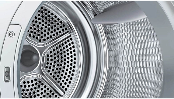 Модель оснащена корзиной для сушки, что позволяет бережно сушить деликатные вещи. Барабан изготовлен из нержавеющей стали, что обеспечивает его долговечность и надежность. Подсветка барабана упрощает загрузку и выгрузку белья. Двигатель с инверторным управлением обеспечивает тихую и эффективную работу машины. Машина имеет возможность отвода конденсата в канализацию и оснащена самоочищающимся конденсатором. Это обеспечивает более эффективную работу и продлевает срок службы устройства. Ворсовый фильтр помогает улучшить качество сушки и предотвратить засорение системы. Дверца машины перенавешиваемая и имеет навес справа, что облегчает ее использование. Модель оснащена защитой от детей, что делает ее безопасной для использования в семьях с маленькими детьми. Класс энергопотребления А+++ гарантирует экономичность использования машины.