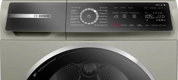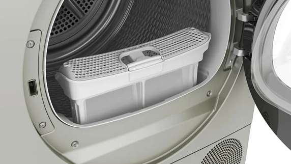 Максимальная загрузка составляет 9 кг, что позволяет сушить большое количество белья за один цикл. Электронное управление с сенсорными элементами Touch control обеспечивает простоту и удобство использования. На LED-дисплее отображается вся необходимая информация, включая индикацию заполнения ворсового фильтра и контейнера для конденсата. Одной из особенностей модели является функция отложенного старта до 24 часов, позволяющая запланировать сушку на удобное время. В ассортименте 14 программ сушки, включая специальные режимы для хлопка, синтетики, рубашек, спортивной одежды, тонкого и смешанного белья, полотенец, шерсти и деликатного белья. С помощью функции AutoDry можно автоматически установить оптимальное время сушки.