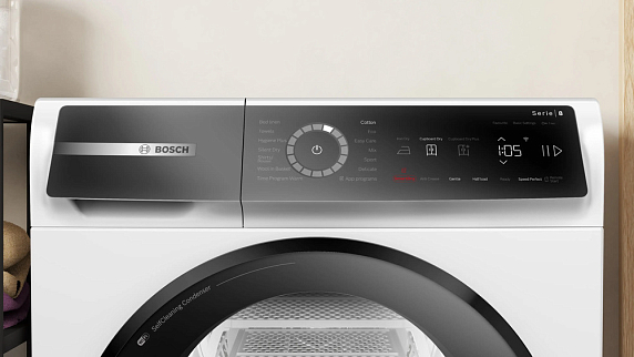 Сушильная машина Bosch WQB246DLSN — современное решение для ухода за текстилем, объединяющее экономичность, бережность и удобство. Белый корпус на отдельностоящем шасси гармонично вписывается в любой интерьер, а дизайн с боковыми панелями AntiVibration снижает вибрации и помогает сохранить устойчивость при работе. Выполненная в стиле Serie 8, модель сочетает минимализм и эргономику: аккуратная дверца с правым навесом, продуманная расположенность сенсорных Touch control и LED дисплея упрощают взаимодействие, а интуитивное электронное управление делает настройку быстрой и понятной. Интерьер барабана изготовлен из нержавеющей стали, оснащён технологией SoftDry и LED подсветкой, что обеспечивает равномерное обращение с вещами и облегчает загрузку-выгрузку даже при плохом освещении.