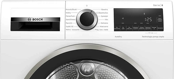 - AutoDry — функция, которая автоматически определяет степень влажности белья и регулирует время сушки, чтобы обеспечить идеальный результат без риска пересушивания.