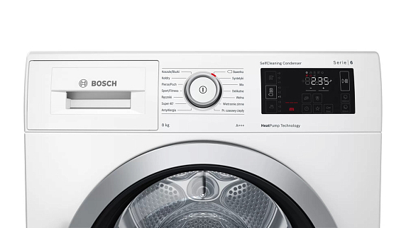 Сушильная машина Bosch WTW876S0PL отличается высоким качеством, надежностью и функциональностью. Машина оснащена электронным управлением с помощью поворотного переключателя, что делает ее использование удобным и простым. Благодаря своим размерам, она легко устанавливается в любом помещении. Корпус машины выполнен в классическом белом цвете, что позволяет ей гармонично вписываться в интерьер любого стиля. Особое внимание заслуживает система сушки этой модели. Тип сушки - конденсационный, что обеспечивает эффективное и быстрое сушение белья. Максимальная загрузка составляет 9 кг, что позволяет сушить большое количество белья за один цикл. В машине предусмотрено 14 программ, включая сушку хлопка, синтетики, рубашек, пуховиков, спортивной одежды, смешанного белья, полотенец, шерсти и деликатного белья. Особенностью модели является наличие функции AutoDry, которая автоматически контролирует процесс сушки и предотвращает пересушивание белья. Кроме того, есть возможность выбрать супербыструю программу сушки, которая длится всего 40 минут.
