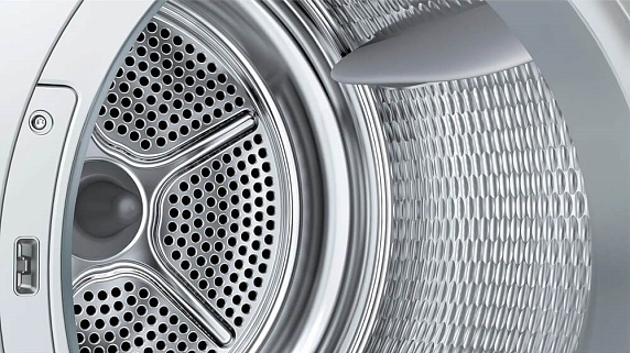 Сушильная машина Bosch WTX87K40PL занимает столько же места, сколько обычная стиральная машинка. Она выполнена в классическом белом цвете и без труда впишется в интерьер вашей квартиры. Тем не менее, в нее можно поместить до 9 кг белья. Загружайте вещи из любых тканей — у этой модели столько программ, что она справится с любым. Полотенца, спортивные вещи, синтетика, смешанные ткани, тонкое и деликатное белье — оборудование справится со всем. Машине можно доверить и сушку шерстяных изделий. Для этого тут есть специальная корзина, куда аккуратно помещаются вещи. Важно, что при обработке они не деформируются. В этой же корзине удобно сушить и обувь.
