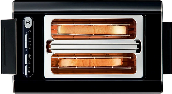 В основе нагрева лежат кварцевые элементы MirrorHeating, обеспечивающие быстрый разогрев при мощности 860 Вт, что сокращает время приготовления и равномерно подрумянивает хлеб. Электронная система управления с наглядной индикацией режимов позволяет легко выбирать оптимальную степень поджаривания, регулируемую по вкусу, а функции Stop, размораживания и подогрева расширяют сценарии использования: от быстрого перекуса до подготовки тёплых булочек. Автоматическое центрирование ломтиков гарантирует равномерную прожарку по всей поверхности, а плавный подъём облегчает извлечение горячих изделий без риска ожога.