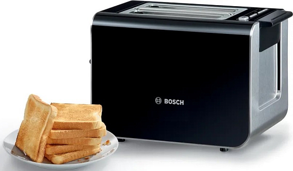 Тостер Bosch TAT8613N сочетает в себе лаконичность формы и продуманную функциональность, выполненный в чёрном цвете с элементами из нержавеющей стали, он станет органичным акцентом на рабочей поверхности. Компактные габариты 18.4 х 31.3 х 17 см и аккуратный дизайн позволяют экономить место, не жертвуя вместительностью: два отделения стандартизированного размера 15 х 3.4 х 11.5 см идеально подходят для порционных ломтиков и небольших булочек. Корпус изготовлен из прочной нержавеющей стали с термоизоляцией, поэтому внешняя поверхность остаётся безопасной на ощупь даже в процессе работы, а утончённая отделка подчёркивает современный характер техники.