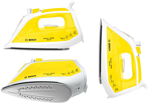 Утюг Bosch TDA 1024140 имеет рукоятку с мягким напылением soft touch и подошву с керамическим покрытием PalladiumGlissee, которая обеспечивает превосходное скольжение по всем видам ткани. Полезная функция — автоотключение Auto-shut-off-secure. Если вы оставили прибор в вертикальном положении, то он отключится через 8 минут. Этого времени достаточно для отпаривания. Если забыли утюг при глажении, то через 30 секунд после окончания движения он выключится. Настоящая находка для забывчивых.